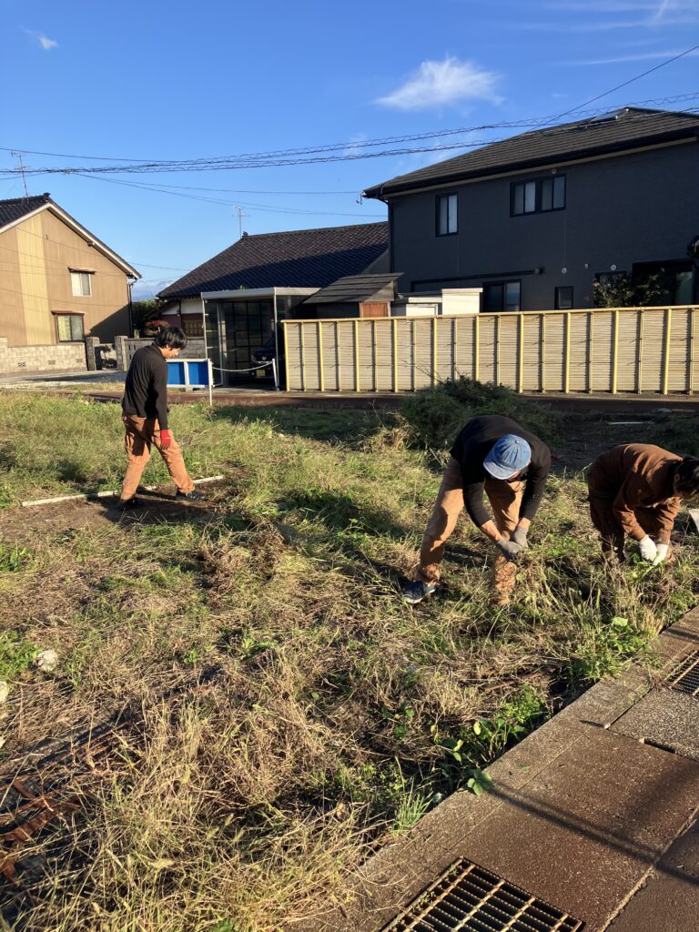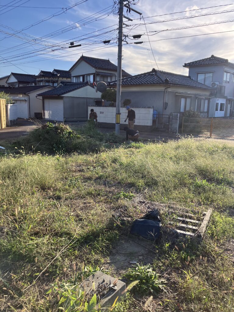 ・近くの社有地の草刈風景。防草シートの上から草が生えてきてました。