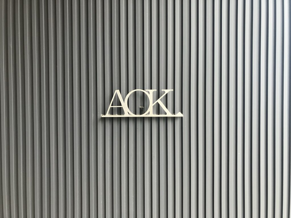 事務所の玄関にもある、ロゴマークを使うことは早々に決まったものの、サイズや位置、材質の検討